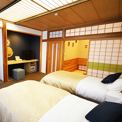 客室は和と自然のコンセプトによって、上質な大人の空間を演出しています。すべての部屋にアメリカシェアNo.1のシーリー社製のベッドを完備しているため、ゆっくりとリラックスタイムを過ごせるでしょう。
