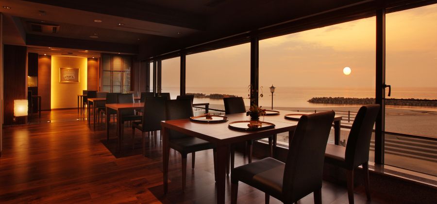 どの部屋に泊まっても、雄大な日本海を望める「游水亭いさごや」です。