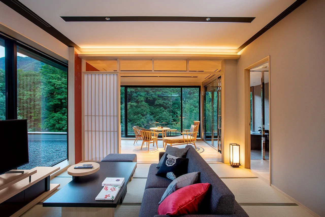 「シャレーアイビー定山渓」は札幌中心街から車で約45分にある、豊かな自然に包まれる高級リゾートホテルです。部屋はのんびりと非日常へ没入できるように、全室の屋内テラスに床暖房を備えています。